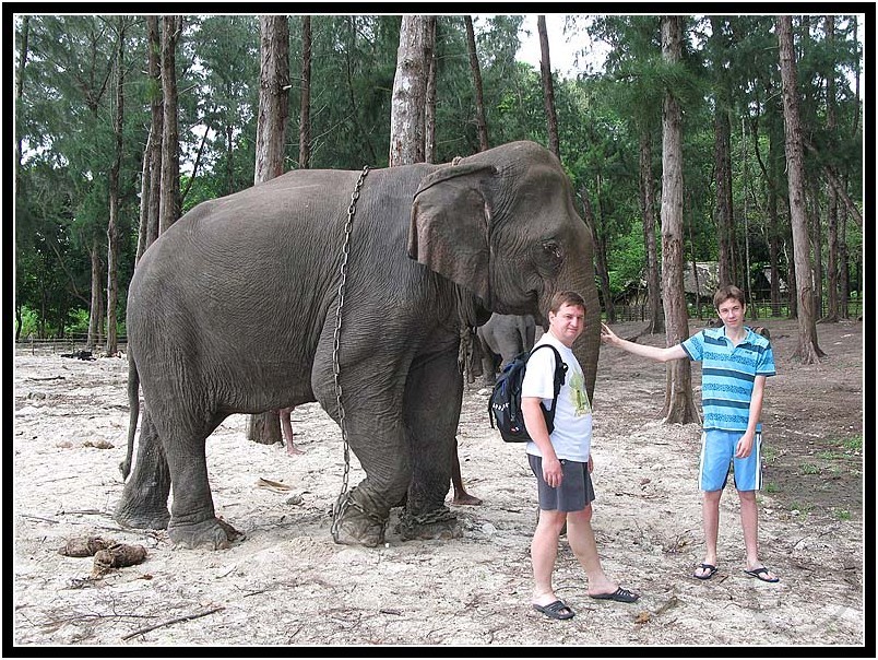 Недалеко от деревни находится школа молодых слонов. Здесь их дрессируют, готовят для работы, учат таскать бревна, переносить тяжести... Решили заехать, посмотреть. Оказалось, что сегодня в школе выходной и слонов погнали в лес покормиться. Но какой-то абориген сказал, что нужно немного подождать и они придут. Так и сделали. Работники слоновьей школы любезно разрешили нам походить по территории. Пообщались со слониками, пофотографировались и поехали на пляж черных скал. Весь пляж засыпан белым песочком, но в конце в море вдается короткая коса из черных камней, из-за которых, видимо, пляж и получил свое название. Пляж как пляж - ничего примечательного.